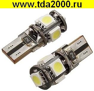 Автолампа светодиодная без цоколя т10 5 led 5050 0,6вт 45Lm