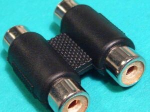RCA 2 гнезда~Аудио 3,5 штекер Переходник пластик «позолоченный» (Переход 3.5мм шт стерео — 2 x RCA гн)