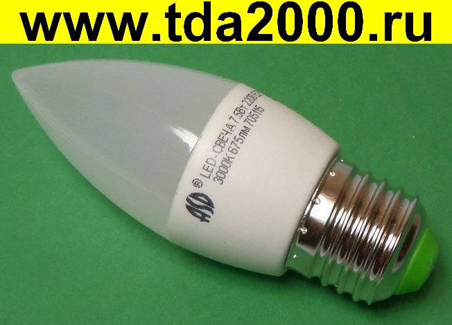 7,5вт Лампа E27 7,5вт 600Лм 160-260в светодиодная LED-СВЕЧА-standard 3000К ASD