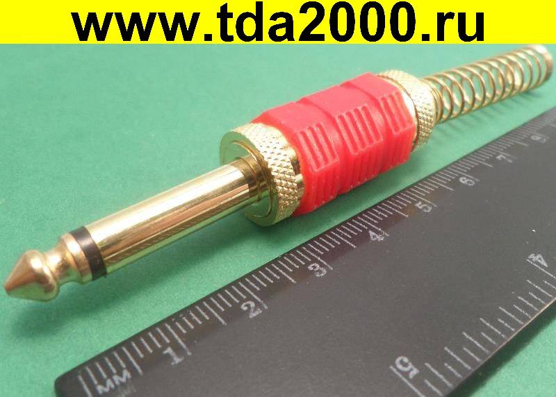 Разъём Аудио 6,3 моно штекер на кабель красные полоски металлический GOLD [50]