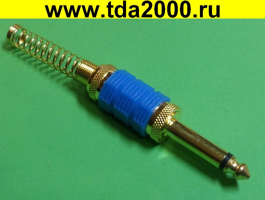 Разъём Аудио 6,3 моно штекер на кабель синие полоски металлический GOLD