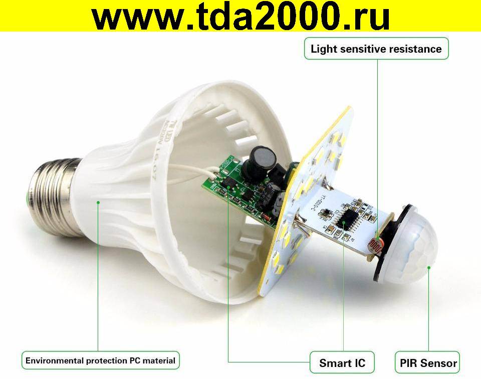 9вт Лампа E27 9вт 220в с автовключением на движение