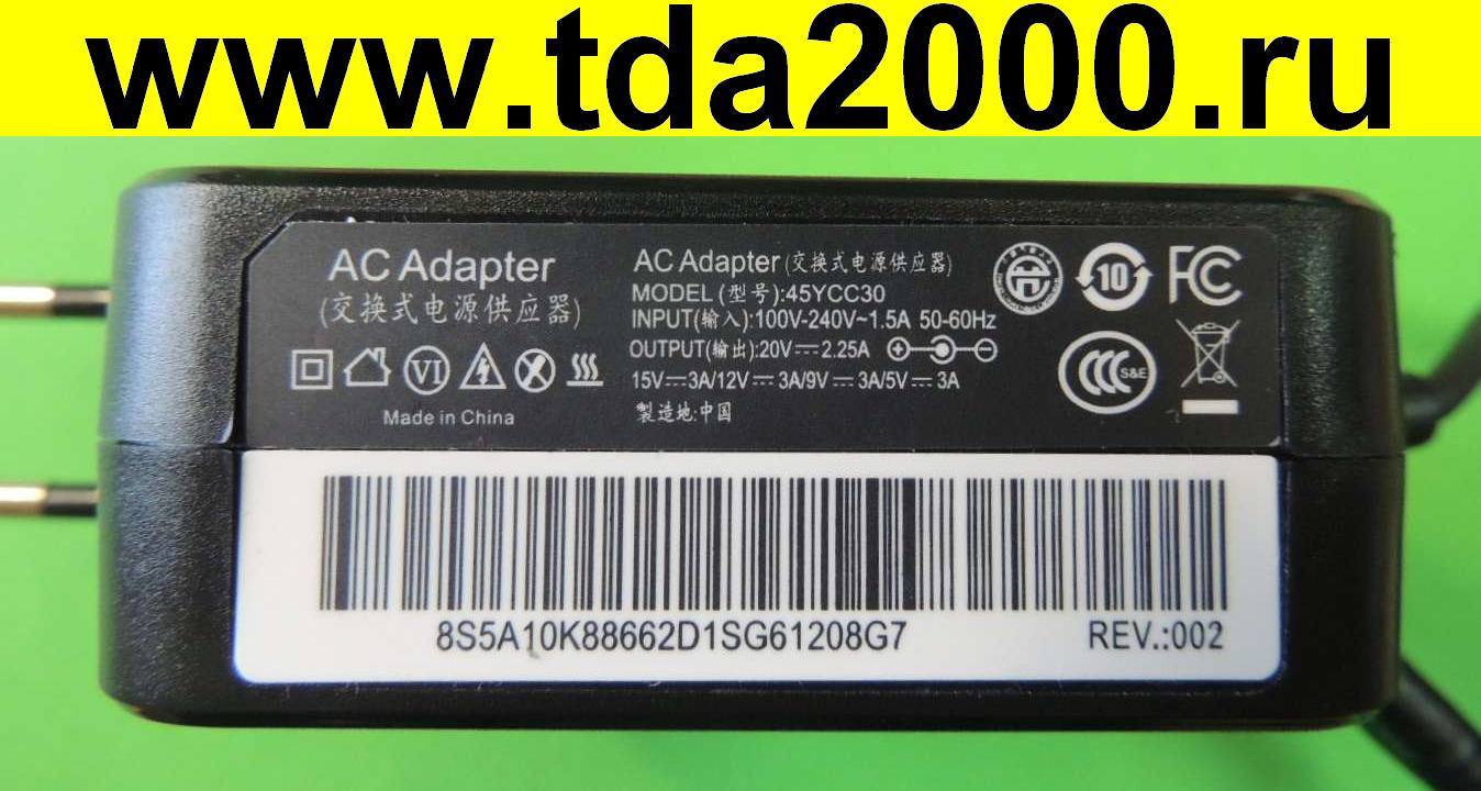 Адаптер 19в 5-9-12-15= 3 А, 20в = 2,25 А (TYPE-C) модель 45YCC30 Блок питания