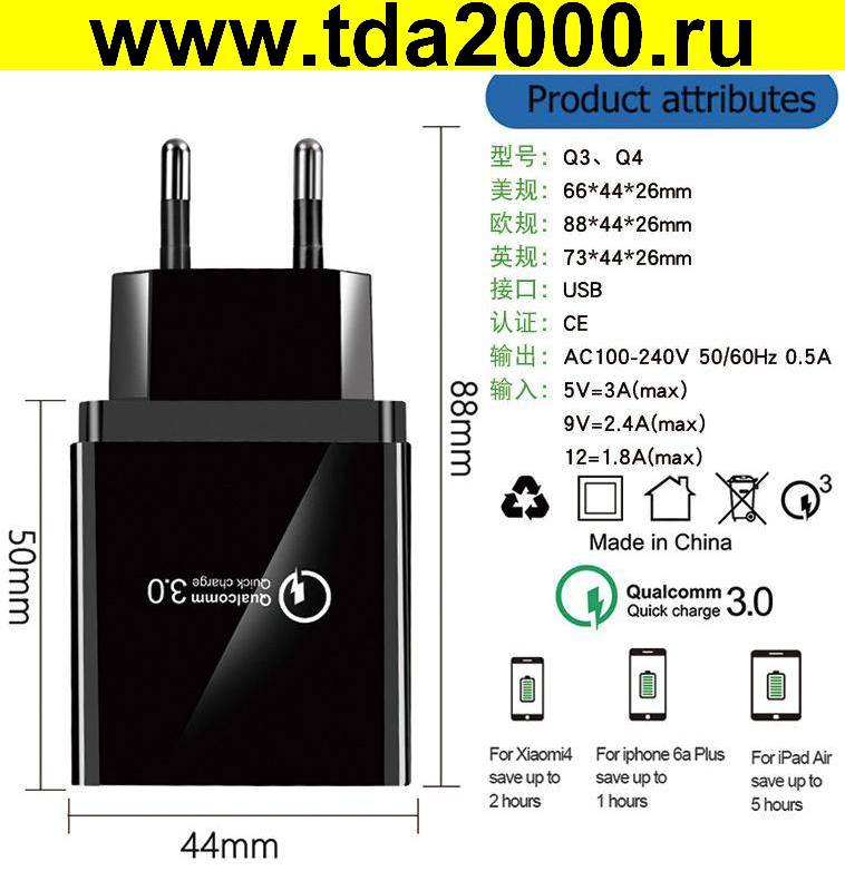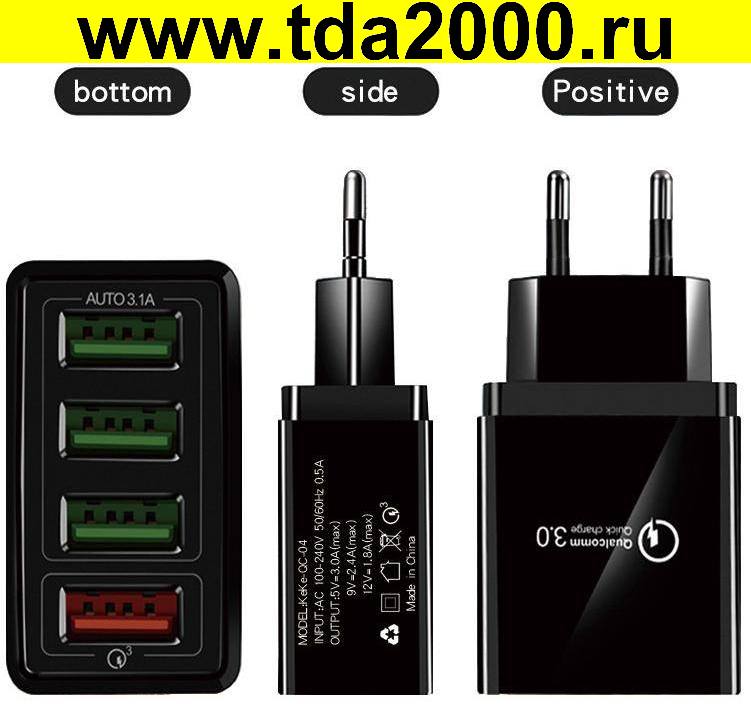 Адаптер 5в 3,1А 4 гнезда USB черный реальный ток до 3,9 Блок питания