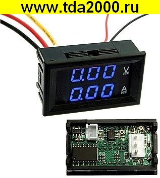 Вольтметр+Амперметр 0-100V/0-10A (измерительная головка) Щитовой Blue