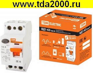 Брейкер ВД1-63 2Р 16А 30мА тип А