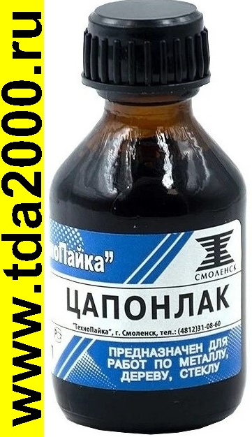 Цапонлак — прозрачный раствор целлулоида в эфире, употребляется для покрытия металлических изделий, ценных документов с целью предохранения их от атмосферных влияний.Предназначен для покрытия черных и цветных металлов, стекла, кирпича, камня, керамики, дерева, бумаги и других изделий.Может использоваться как для внутренних, так и для внешних работ, эксплуатирующихся при температуре от -30°С до +150°С.