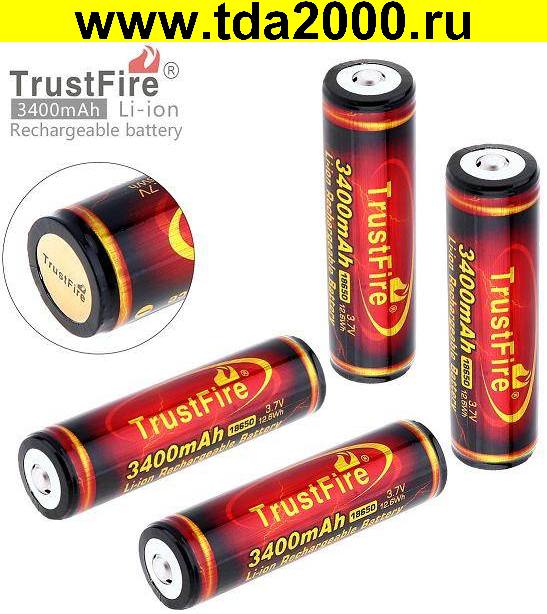 Элемент (18650) 3400мАч TrustFire (с защитой) Li-ion (реальная емкость 3380) аккумулятор 3,7в