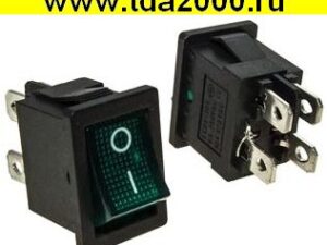 Клавишный 21х15 4pin зеленый с подсветкой 220в неон выключатель рокерный (Переключатель коромысловый)