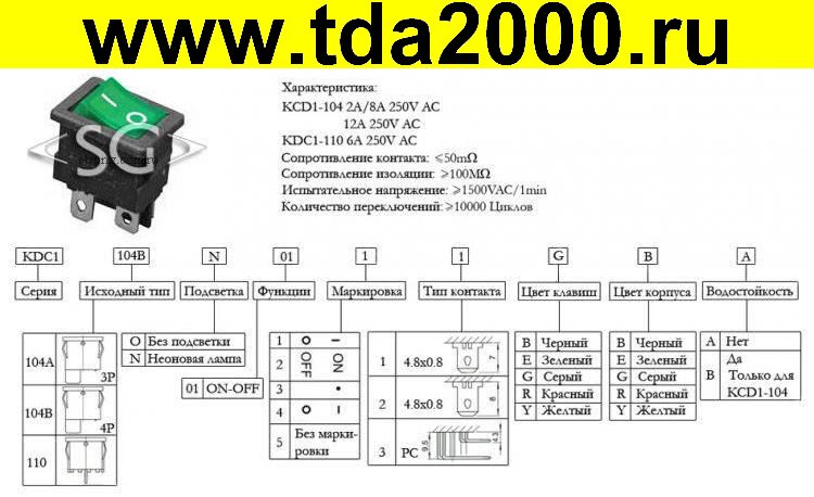 Технические характеристики клавишного переключателя:
