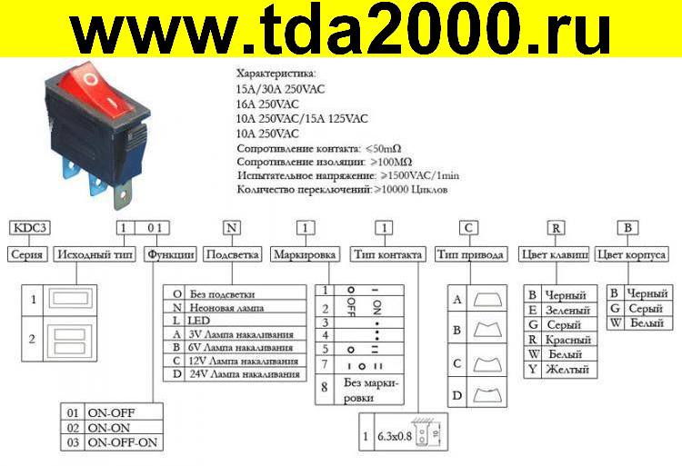 Технические характеристики клавишного переключателя: