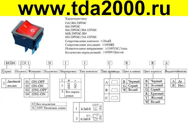 Технические характеристики клавишного переключателя:
