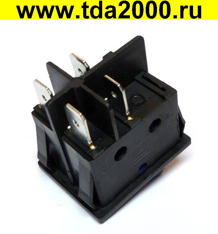 Клавишный 31х25 4pin синий с подсветкой KCD4-JK/N, неон, 16А, 250V, 125°C выключатель рокерный (Переключатель коромысловый)