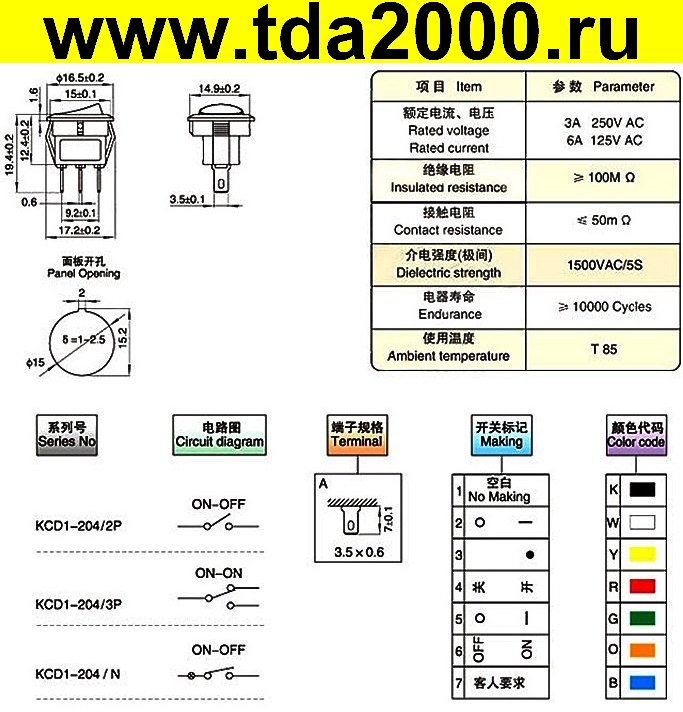 Технические характеристики клавишного переключателя: