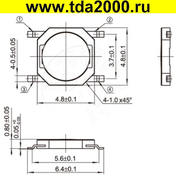 Кнопка 5х5×0,8 мембрана большая тактовая