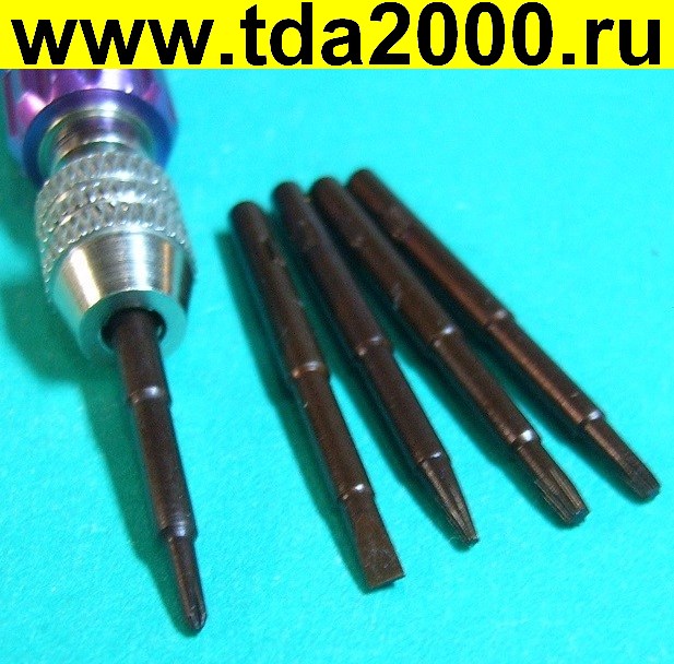 Отвертка с насадками 5in1 (крепление цанга, контейнер внутри для 5 бит)