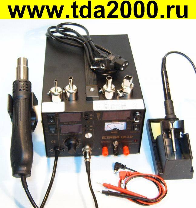В комплекте: главный блок с феном горячего воздуха и кабелем питания, насадки для фена, паяльник, подставка для паяльника, губка для очистки жала паяльника от нагара при работе, подставка для фена.для паяльников подходят жала серии 900M-T-1.
