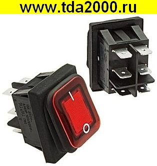 Переключатель клавишный KCD3-B2D-101N11CRB (32X16,4)мм 3конт. 6,3мм, красный neon (выключатель рокерный)