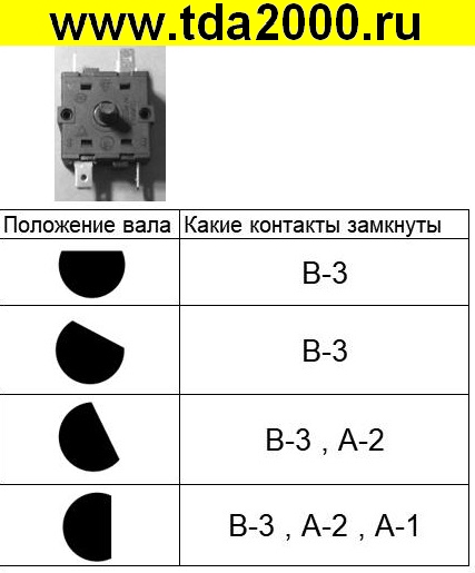 Переключатель обогревателя 3 вывода 4 положения, 16 А тип1