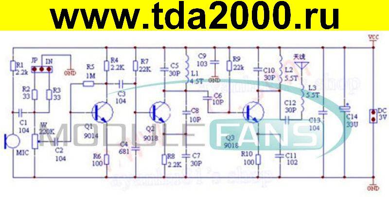 ПП микрофон с FM передатчиком 1,5-9в