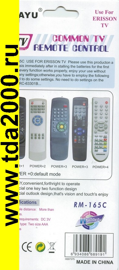 TV, МИКРОСХЕМА RC-63301B… 5 КОДОВ