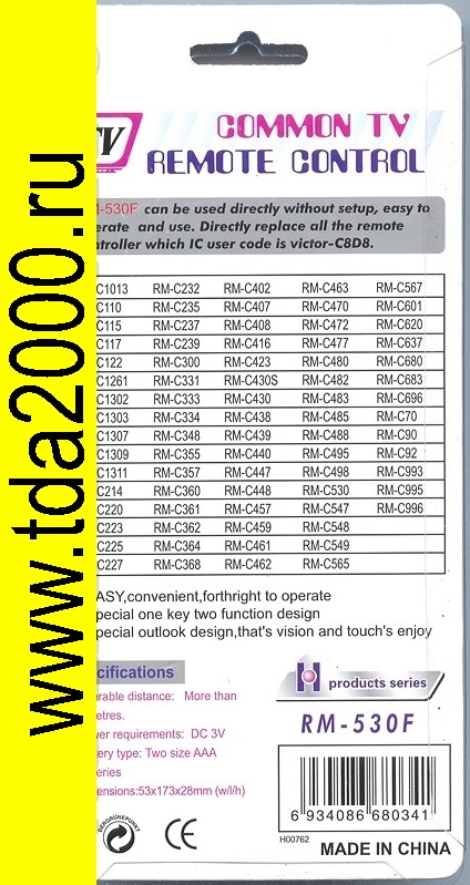 Пульт Jvc RM-530 F (=D006A001) (универсальный )