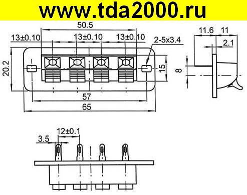 Разъём Корпусной терминал на 2 вывода на планке 24х55мм для подключения динамиков аудио нажимной Зажим