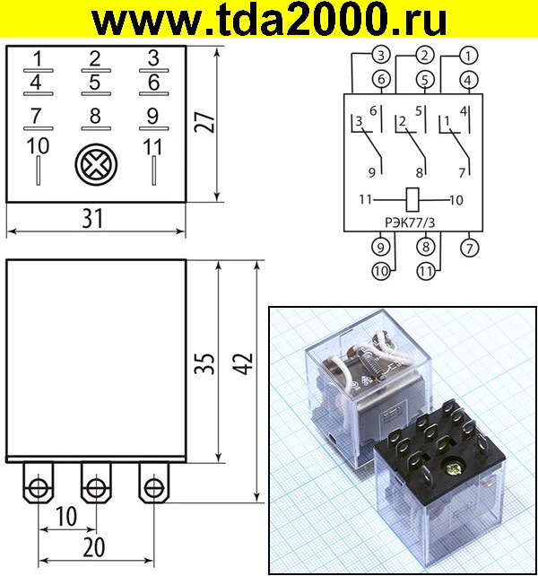 Количество товара Реле РЭК77/3 230В 50Гц (10А RRP10-3-220A. В упаковке)
