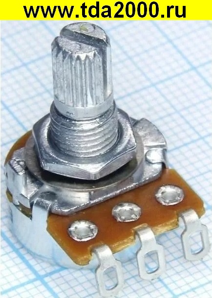 Номинал B250K, вал 15мм, накатка 18 зубьев Резистор одинарный регулировочный однооборотный.