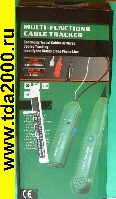 Тестер проверки линий MS6812 создан для выявления и прослеживания повреждений проводов и кабелей в группе без вскрытия оплетки. Для проверки телефонных линий выявляет состояние линии, удобен в установке, исправляет и поддерживаети помогает содержать в исправности телефонную линию. Тестер состоит из передатчика (MS6812-T) и приемника (MS6812-R) сигнала.