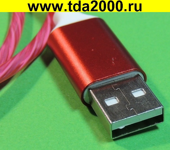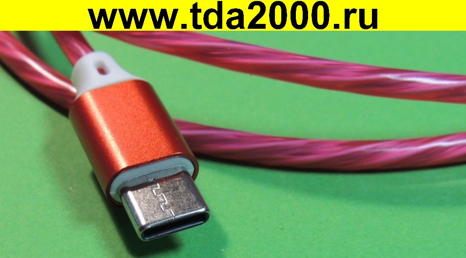 USB штекер светящийся~Type-C штекер шнур 1м красная змейка