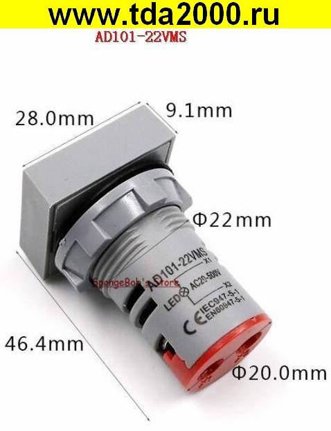 Вольтметр ~20-500в цифровой светодиодный AD101-22VMS