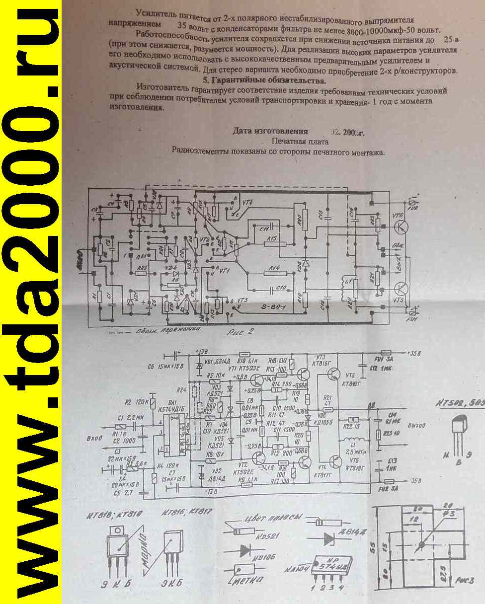 Работоспособность усилителя сохраняется при снижении источника питания до 25 В (при этом снижается, разумеется, мощность). Для реализации высоких параметров усилителя его необходимо использовать с высококачественным предварительным усилителем и акустической системой. Для стерео варианта необходимо приобретение 2 радиоконструкторов.